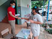 เจ้าหน้าสาธารณสุขตำบลบางปลาให้ความรู้เกี่ยวกับ covid-19